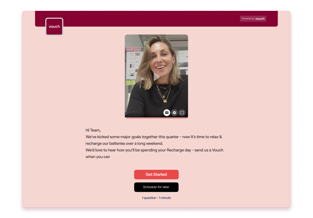 Keep reading to learn how you can drive greater video volumes, even from those respondents hardwired to dodge the record button. Or check out this webinar clip from Vouch's Enterprise Sales Lead, Ben Sher, who'll take you through his favourite features.