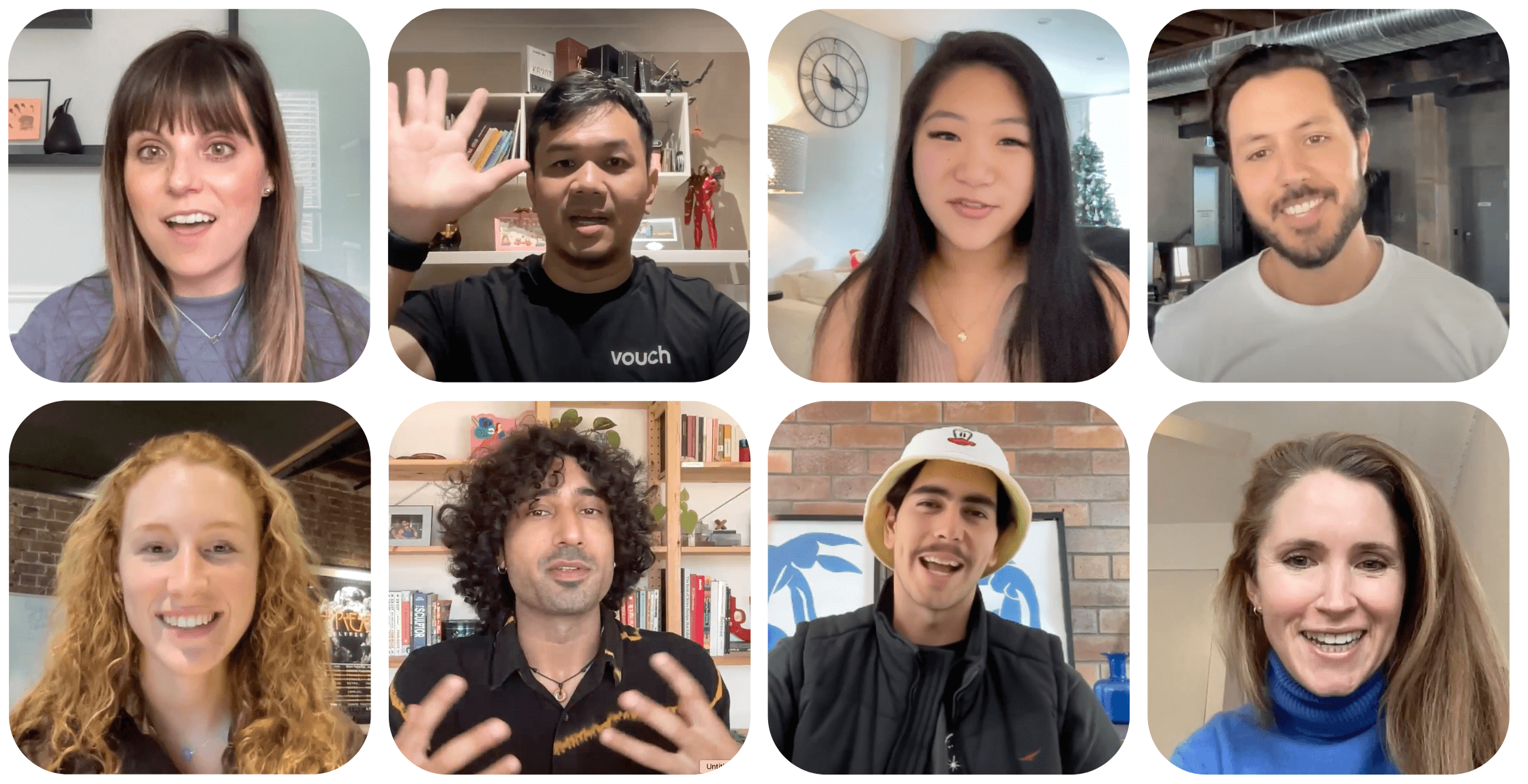 At Vouch, we include cover videos in employee onboarding requests. It gives our People and Culture lead the opportunity to welcome the new hire, warm them up before recording their video and keep them focused on the relevant messages which will be shared across team meetings, social media and other employer brand channels.