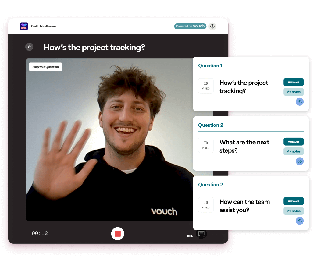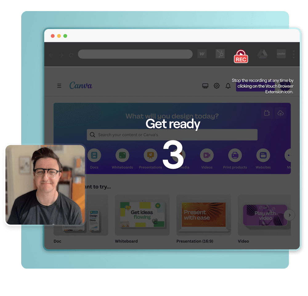 Record, share and request video without leaving your browser tab. Seamlessly bring video into your workflow with the Vouch browser extension.