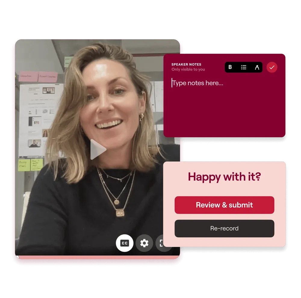 Let's make video easy for your customers. With your questions on-screen, guided ratios and timelengths, together with AI-generated scripts, even the camera-shy are ready to share their story.