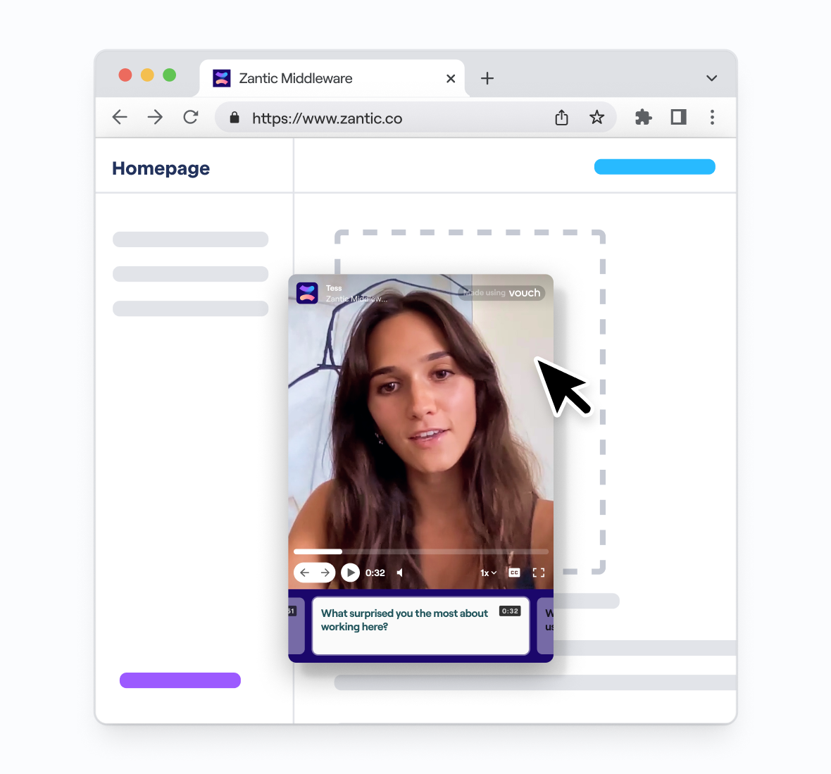 Share your content instantly and on-brand with the Vouch video player. A custom landing page that can be shared via link.