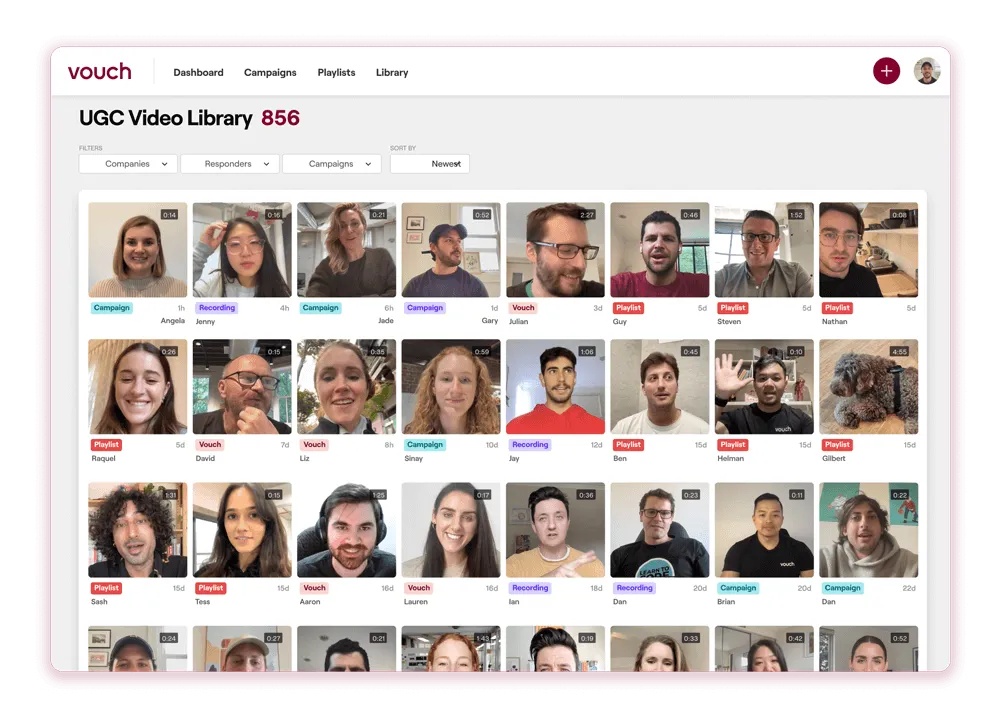 Build a library of short, authentic consumer videos with Vouch. Set your questions and generate always-on requests, right from your workflow.